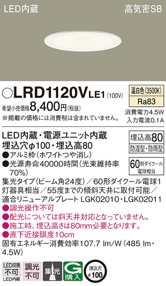 Panasonic ¥¨¥¯¥¹¥Æ¥ê¥¢¥À¥¦¥ó¥é¥¤¥È LRD1120VLE1