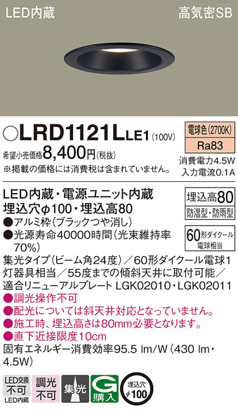 Panasonic ¥¨¥¯¥¹¥Æ¥ê¥¢¥À¥¦¥ó¥é¥¤¥È LRD1121LLE1