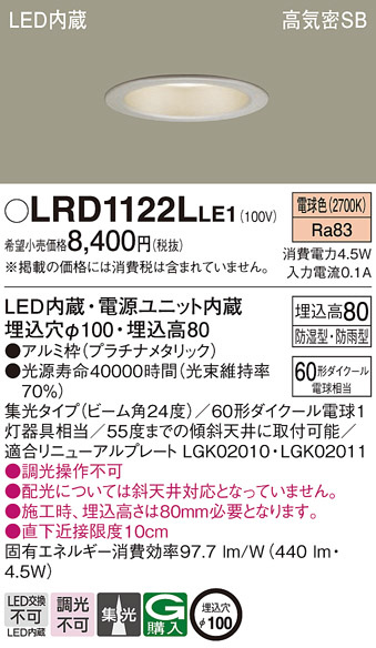 Panasonic ¥¨¥¯¥¹¥Æ¥ê¥¢¥À¥¦¥ó¥é¥¤¥È LRD1122LLE1