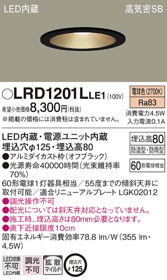 Panasonic ¥¨¥¯¥¹¥Æ¥ê¥¢¥À¥¦¥ó¥é¥¤¥È LRD1201LLE1