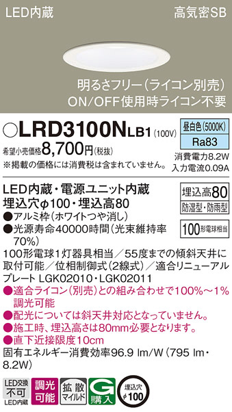 Panasonic ¥¨¥¯¥¹¥Æ¥ê¥¢¥À¥¦¥ó¥é¥¤¥È LRD3100NLB1