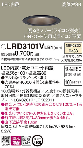 Panasonic ¥¨¥¯¥¹¥Æ¥ê¥¢¥À¥¦¥ó¥é¥¤¥È LRD3101VLB1