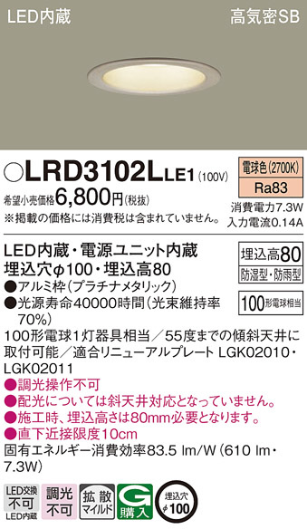 Panasonic ¥¨¥¯¥¹¥Æ¥ê¥¢¥À¥¦¥ó¥é¥¤¥È LRD3102LLE1