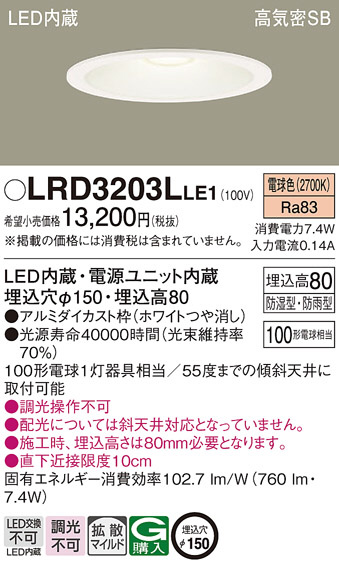 Panasonic ¥¨¥¯¥¹¥Æ¥ê¥¢¥À¥¦¥ó¥é¥¤¥È LRD3203LLE1