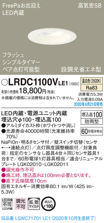 Panasonic ¥¨¥¯¥¹¥Æ¥ê¥¢¥À¥¦¥ó¥é¥¤¥È LRDC1100VLE1