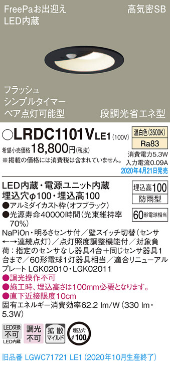 Panasonic ¥¨¥¯¥¹¥Æ¥ê¥¢¥À¥¦¥ó¥é¥¤¥È LRDC1101VLE1