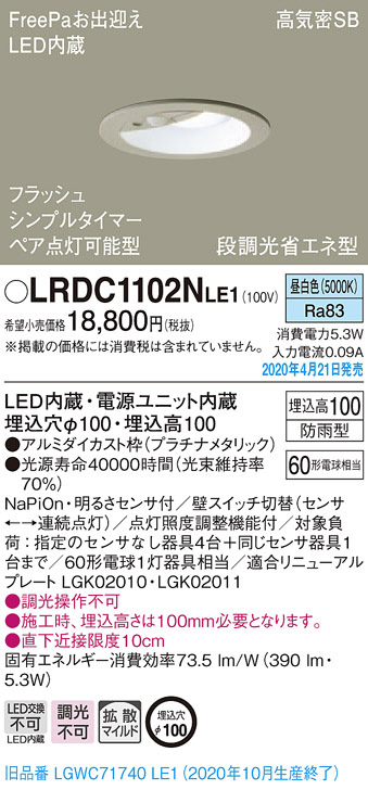 Panasonic ¥¨¥¯¥¹¥Æ¥ê¥¢¥À¥¦¥ó¥é¥¤¥È LRDC1102NLE1