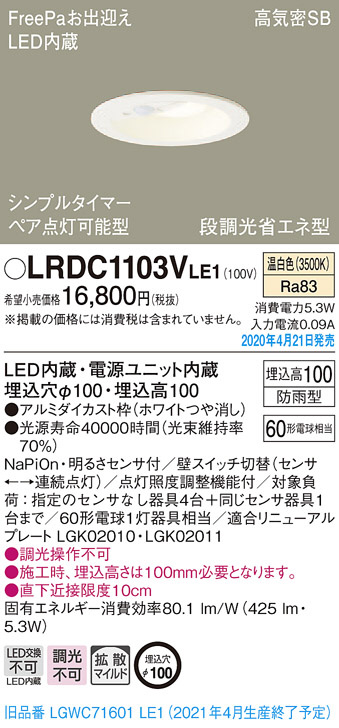 Panasonic ¥¨¥¯¥¹¥Æ¥ê¥¢¥À¥¦¥ó¥é¥¤¥È LRDC1103VLE1