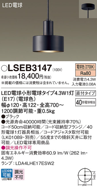 Panasonic ¥Ú¥ó¥À¥ó¥È LSEB3147