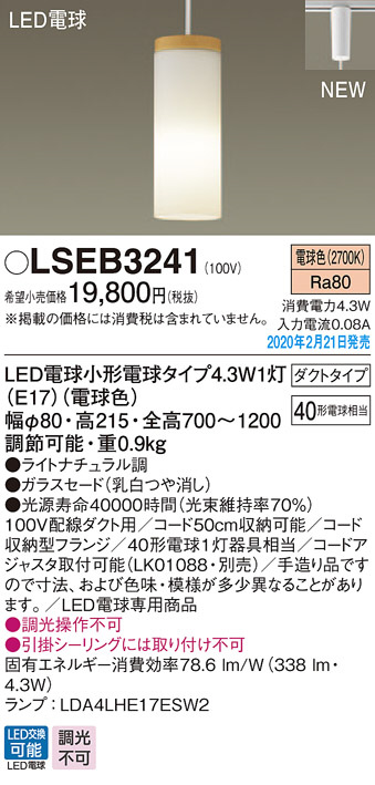 Panasonic ¥Ú¥ó¥À¥ó¥È LSEB3241