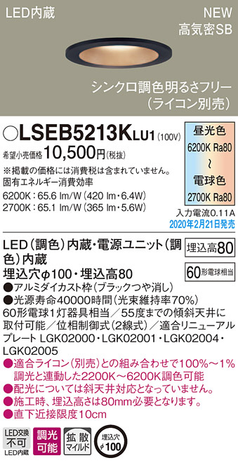 Panasonic ¥À¥¦¥ó¥é¥¤¥È LSEB5213KLU1