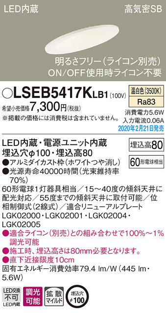 Panasonic ¥À¥¦¥ó¥é¥¤¥È LSEB5417KLB1