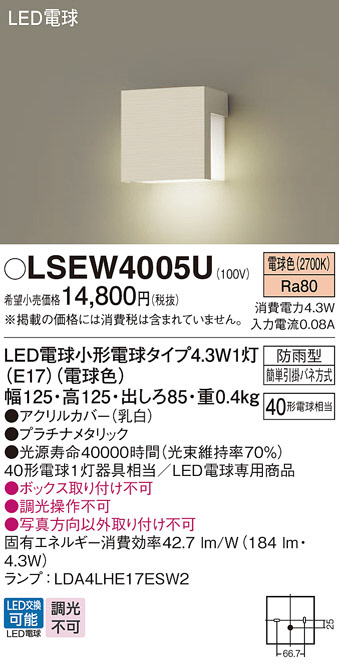 Panasonic ¥¨¥¯¥¹¥Æ¥ê¥¢¥é¥¤¥È LSEW4005U