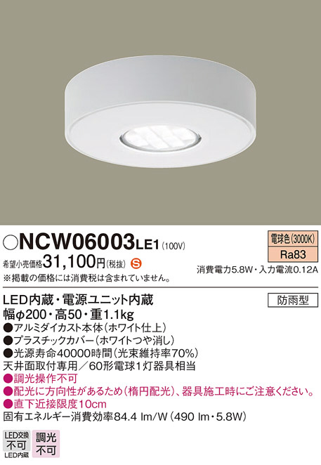 Panasonic ¥·¡¼¥ê¥ó¥°¥é¥¤¥È NCW06003LE1