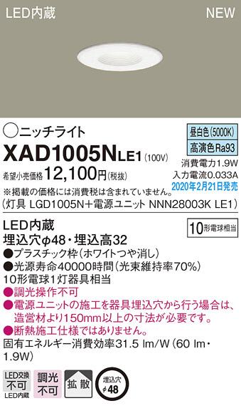 Panasonic ¥À¥¦¥ó¥é¥¤¥È XAD1005NLE1