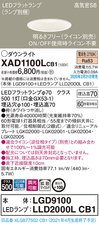 Panasonic ¥À¥¦¥ó¥é¥¤¥È XAD1100LCB1