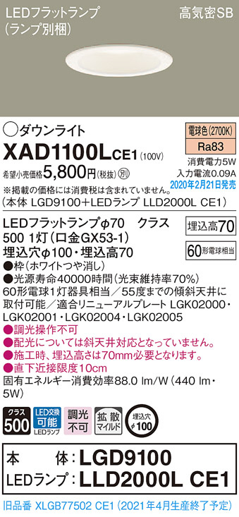 Panasonic ¥À¥¦¥ó¥é¥¤¥È XAD1100LCE1