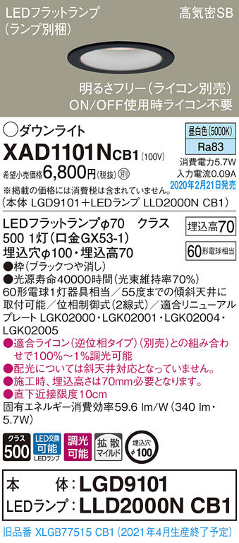 Panasonic ¥À¥¦¥ó¥é¥¤¥È XAD1101NCB1