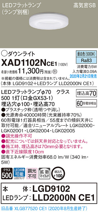 Panasonic ¥À¥¦¥ó¥é¥¤¥È XAD1102NCE1
