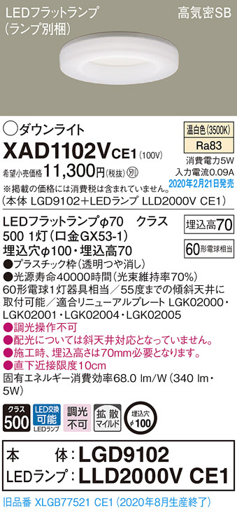 Panasonic ¥À¥¦¥ó¥é¥¤¥È XAD1102VCE1