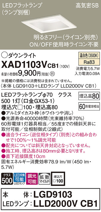 Panasonic ¥À¥¦¥ó¥é¥¤¥È XAD1103VCB1
