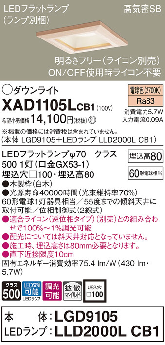 Panasonic ¥À¥¦¥ó¥é¥¤¥È XAD1105LCB1