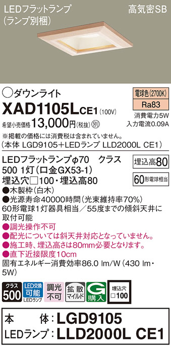 Panasonic ¥À¥¦¥ó¥é¥¤¥È XAD1105LCE1