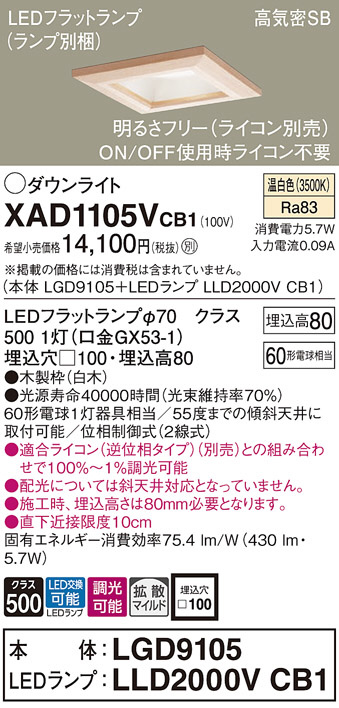 Panasonic ¥À¥¦¥ó¥é¥¤¥È XAD1105VCB1