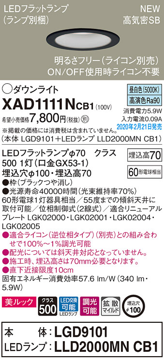 Panasonic ¥À¥¦¥ó¥é¥¤¥È XAD1111NCB1