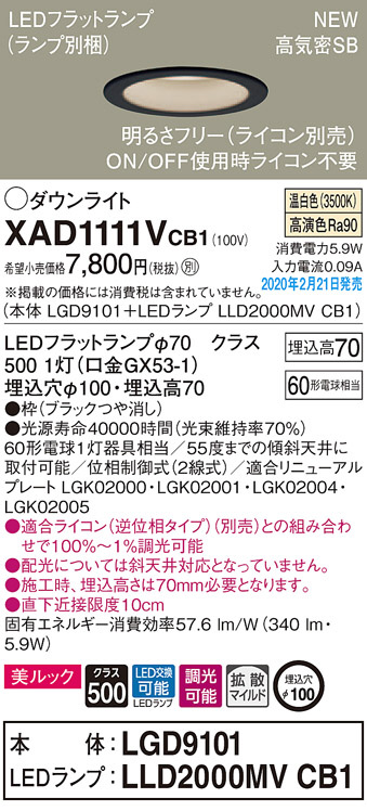 Panasonic ¥À¥¦¥ó¥é¥¤¥È XAD1111VCB1