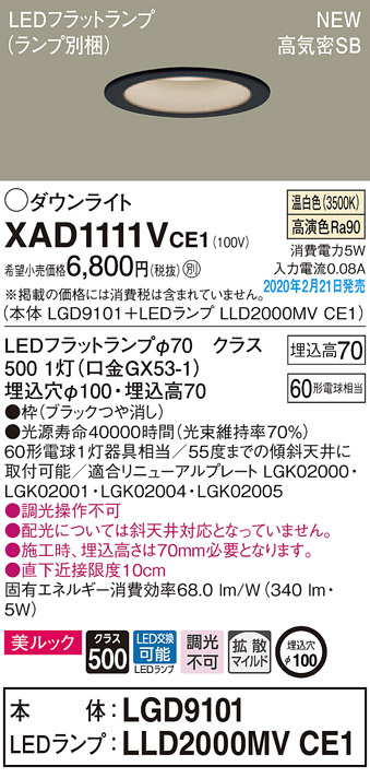 Panasonic ¥À¥¦¥ó¥é¥¤¥È XAD1111VCE1