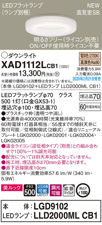 Panasonic ¥À¥¦¥ó¥é¥¤¥È XAD1112LCB1