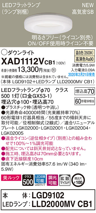 Panasonic ¥À¥¦¥ó¥é¥¤¥È XAD1112VCB1