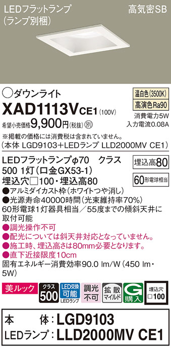 Panasonic ¥À¥¦¥ó¥é¥¤¥È XAD1113VCE1