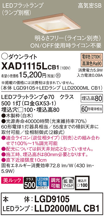 Panasonic ¥À¥¦¥ó¥é¥¤¥È XAD1115LCB1