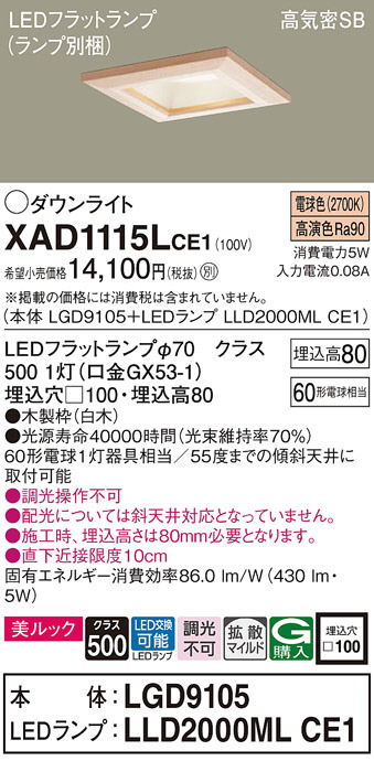 Panasonic ¥À¥¦¥ó¥é¥¤¥È XAD1115LCE1