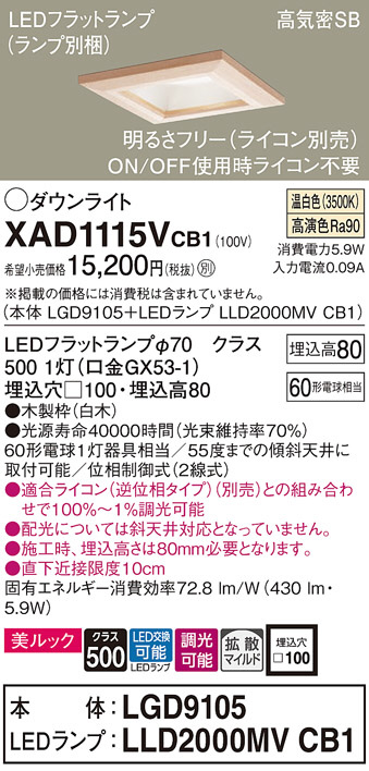 Panasonic ¥À¥¦¥ó¥é¥¤¥È XAD1115VCB1