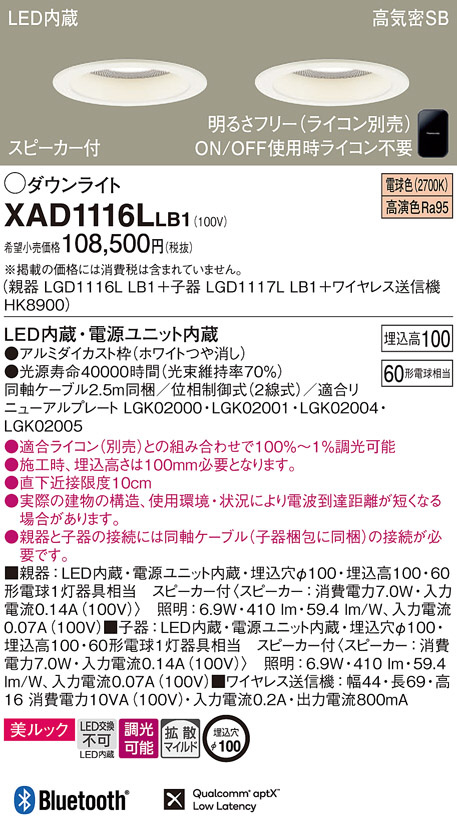 Panasonic ¥À¥¦¥ó¥é¥¤¥È XAD1116LLB1