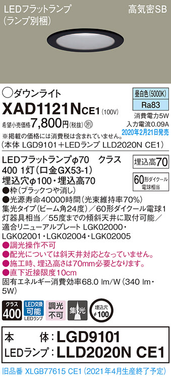 Panasonic ¥À¥¦¥ó¥é¥¤¥È XAD1121NCE1