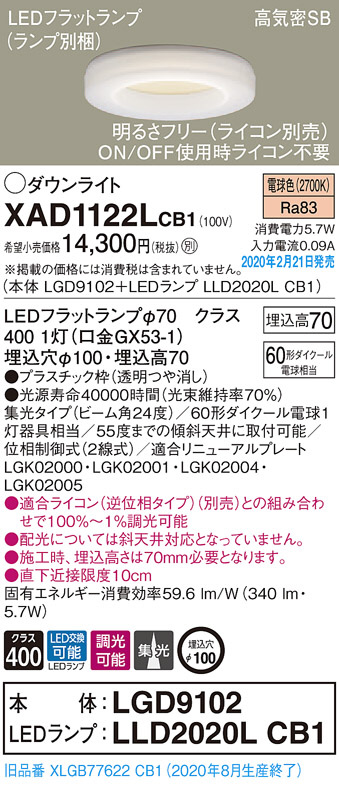 Panasonic ¥À¥¦¥ó¥é¥¤¥È XAD1122LCB1