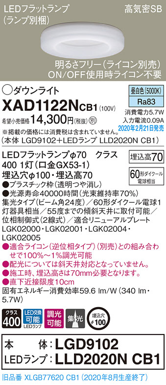 Panasonic ¥À¥¦¥ó¥é¥¤¥È XAD1122NCB1