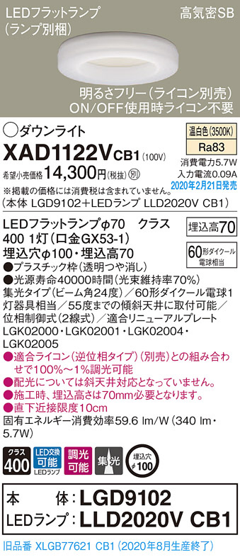 Panasonic ¥À¥¦¥ó¥é¥¤¥È XAD1122VCB1
