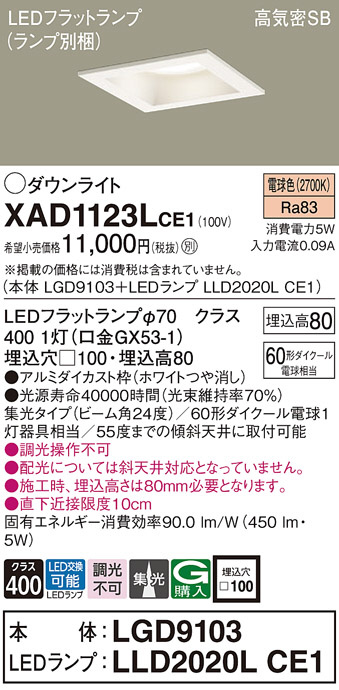 Panasonic ¥À¥¦¥ó¥é¥¤¥È XAD1123LCE1