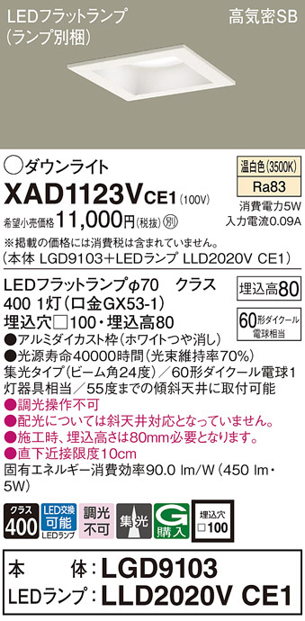 Panasonic ¥À¥¦¥ó¥é¥¤¥È XAD1123VCE1