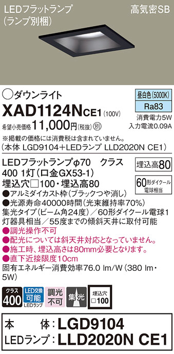 Panasonic ¥À¥¦¥ó¥é¥¤¥È XAD1124NCE1
