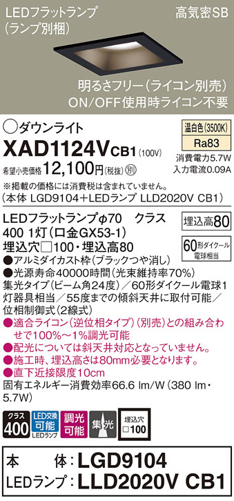 Panasonic ¥À¥¦¥ó¥é¥¤¥È XAD1124VCB1
