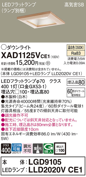 Panasonic ¥À¥¦¥ó¥é¥¤¥È XAD1125VCE1