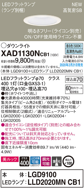 Panasonic ¥À¥¦¥ó¥é¥¤¥È XAD1130NCB1