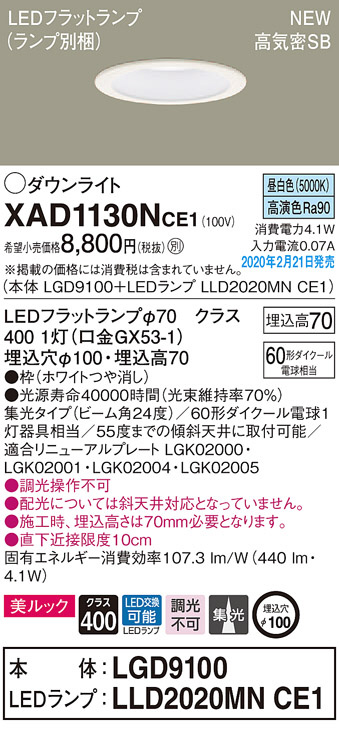 Panasonic ¥À¥¦¥ó¥é¥¤¥È XAD1130NCE1