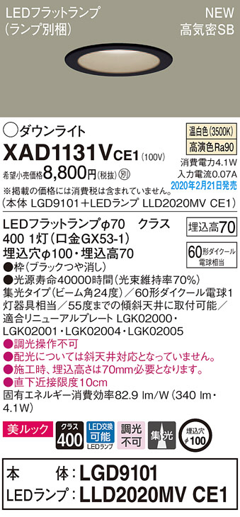 Panasonic ¥À¥¦¥ó¥é¥¤¥È XAD1131VCE1
